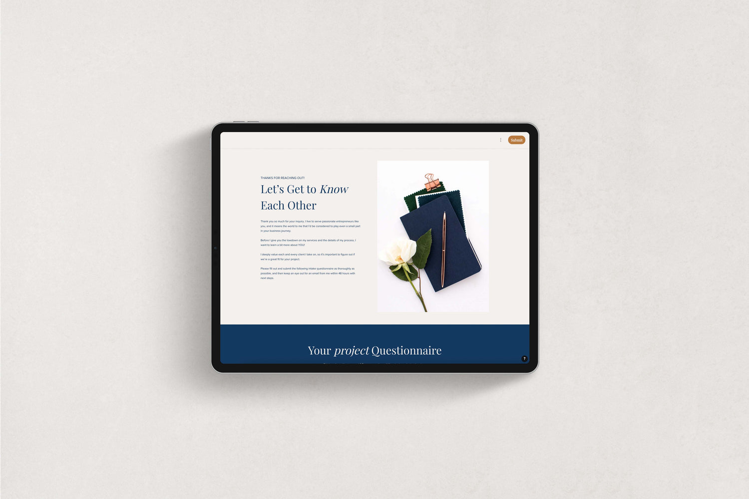 Fill out the Branding & Design Inquiry Form so I can learn about your business and design goals. A quick 15–30 minute consultation may be scheduled to chat through your vision before we get started.